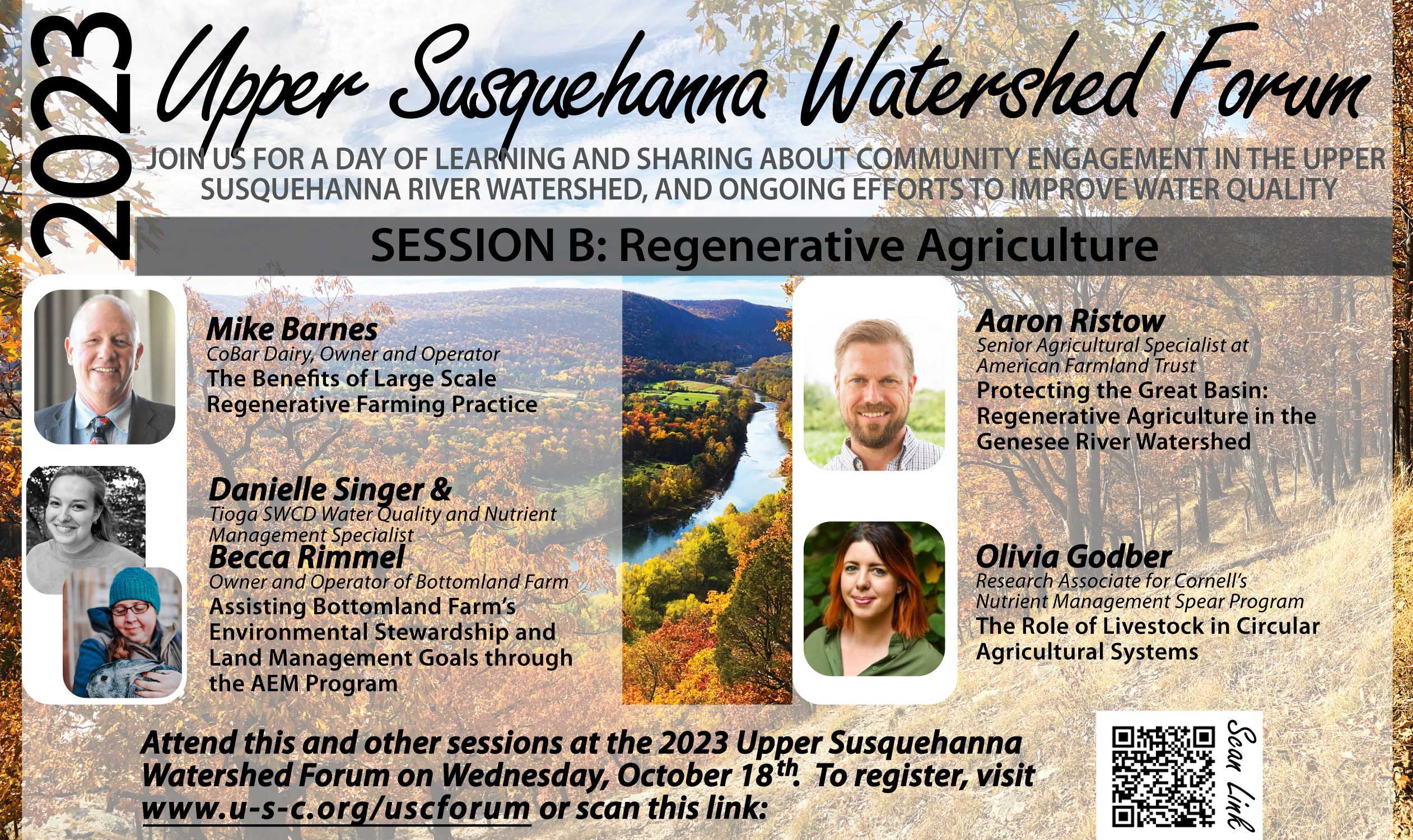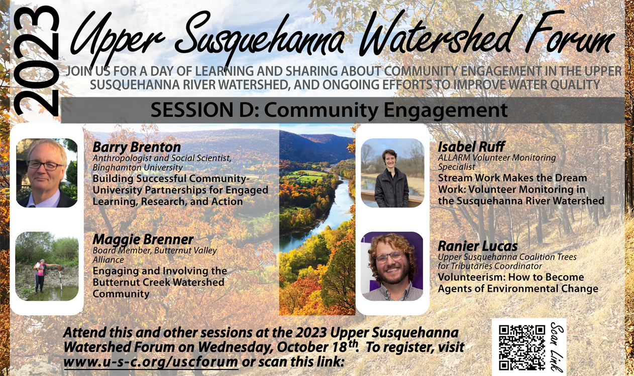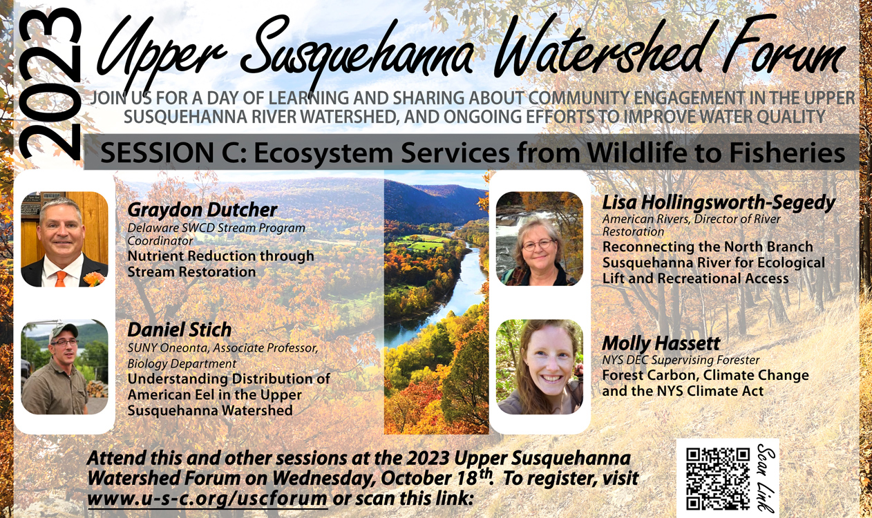 The opportunity “playbook” for working together and inspiring the next generations of land and water stewards will be highlighted at the 2023 Upper Susquehanna Watershed Forum at Binghamton University on October 18th, 2023 from 9:00 am – 5:00 pm.